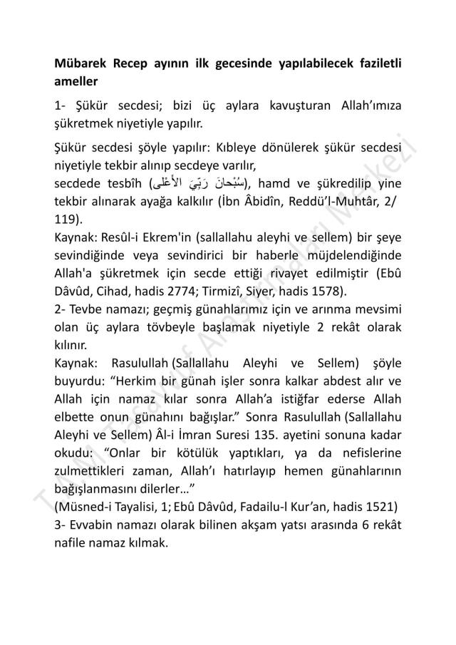 2- Tevbe namazı; geçmiş günahlarımız için ve arınma mevsimi olan üç aylara tövbeyle başlamak niyetiyle 2 rekât olarak kılınır.